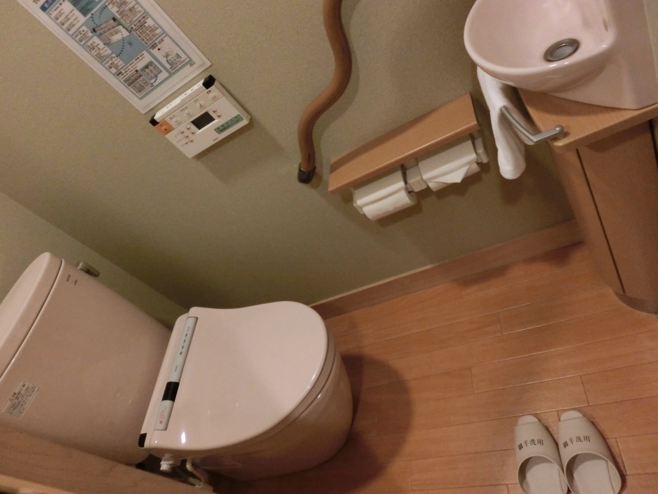 洗面所や入り口に腰掛けが設けられていたり、トイレにも手すりがあり、優しい配慮がありました。