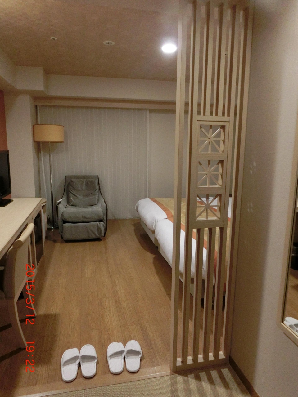 部屋自体は新しく、広くて入口で靴が脱げるタイプなので部屋の中は気楽に歩けます。部屋の中にマッサージチェアがあって自由に使えるのはとても嬉しかったです。