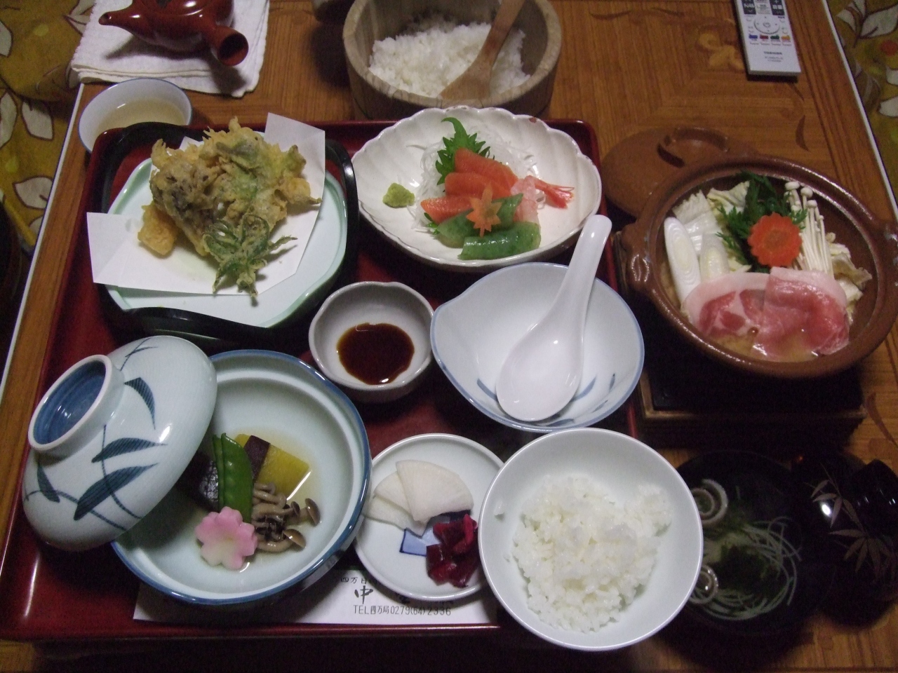 食事は部屋食で、「上州麦豚の味噌仕立て鍋」などの田舎料理がホッとします。布団には、昔懐かしい豆炭あんかを入れておいてくれて、気持ち良く眠れました。