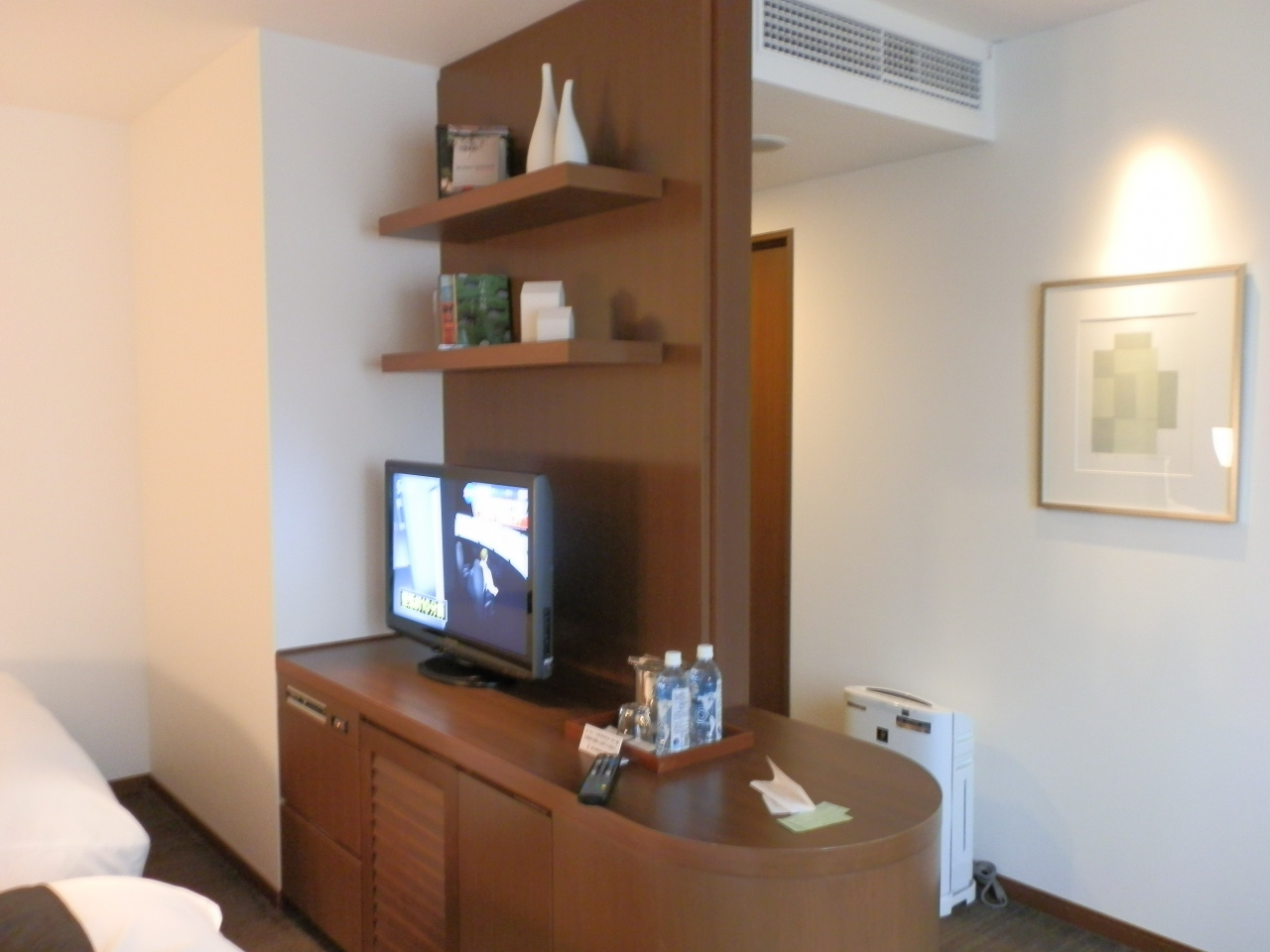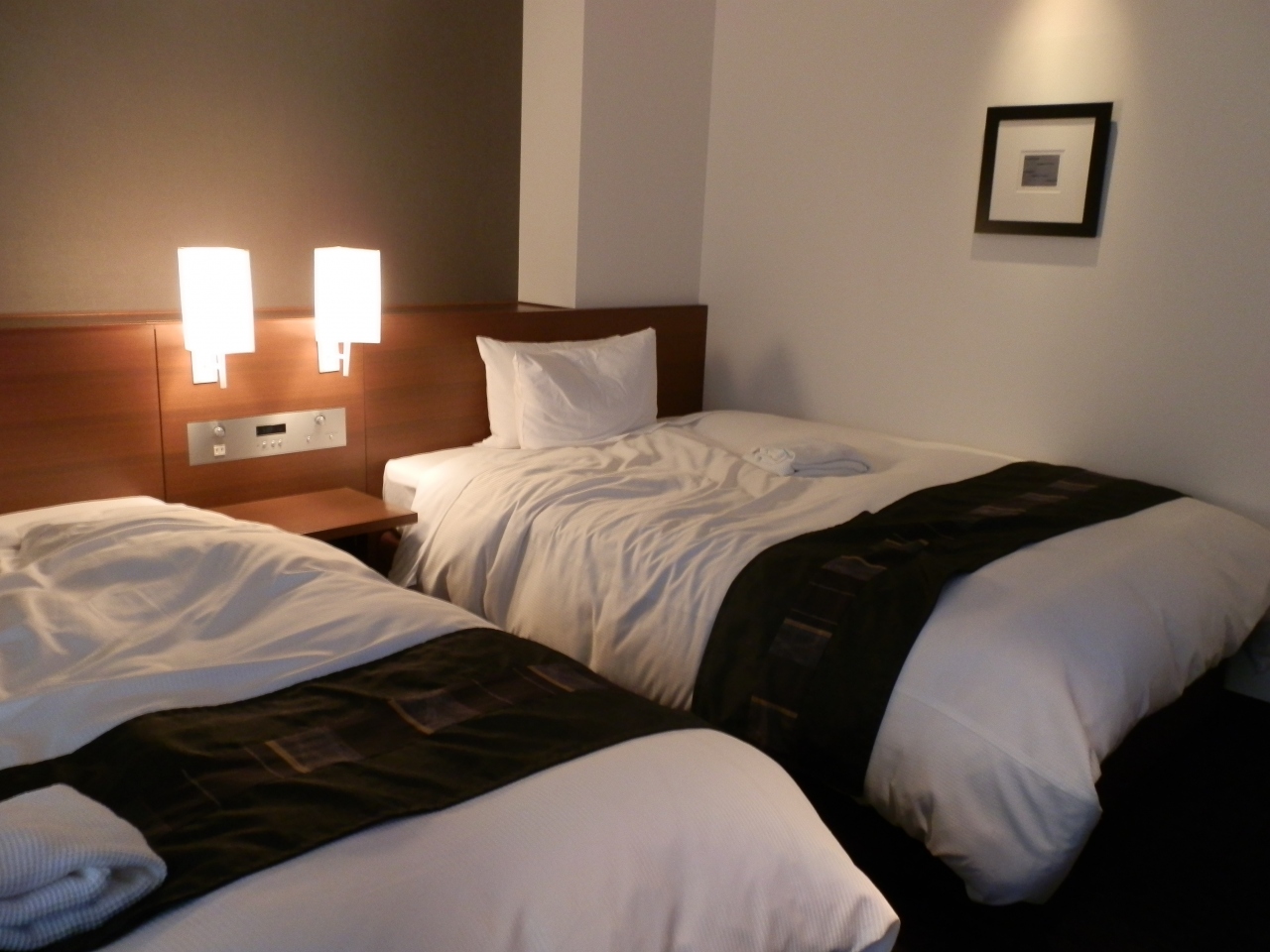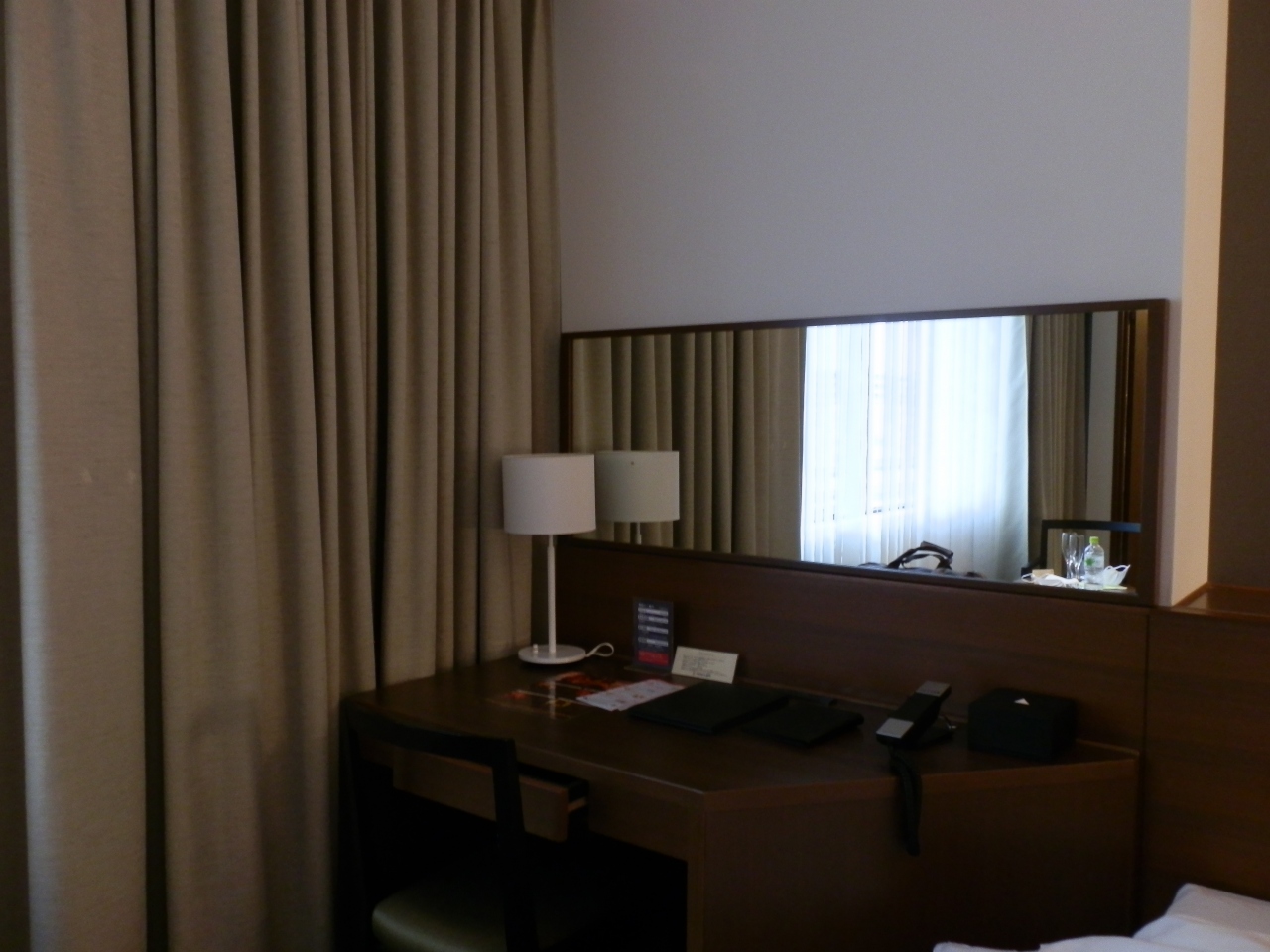 ビジネスホテルだがフロント・ロビー辺りは落ち着いた雰囲気で高級感を感じた。デラックスツインルームだが、スーツケースを広げるには狭い感じがする。廊下的なスペースが余分な気がする。風呂はバスと洗い場があり、日本的で塩梅がよい。但し、洗い桶がないのが残念だ。洗い桶があれば言う事なし。トイレは独立した部屋で最新式の設備を備えている。