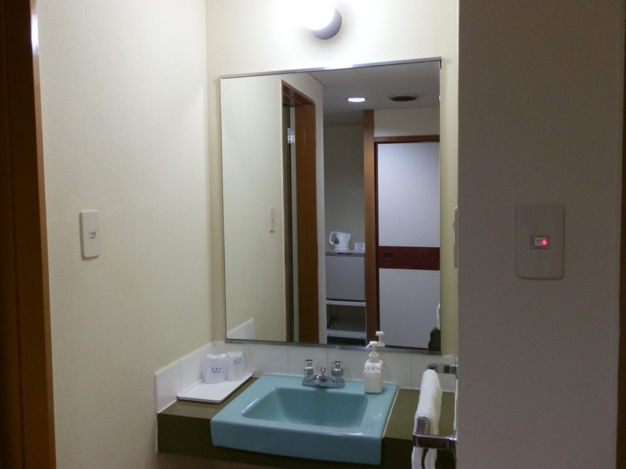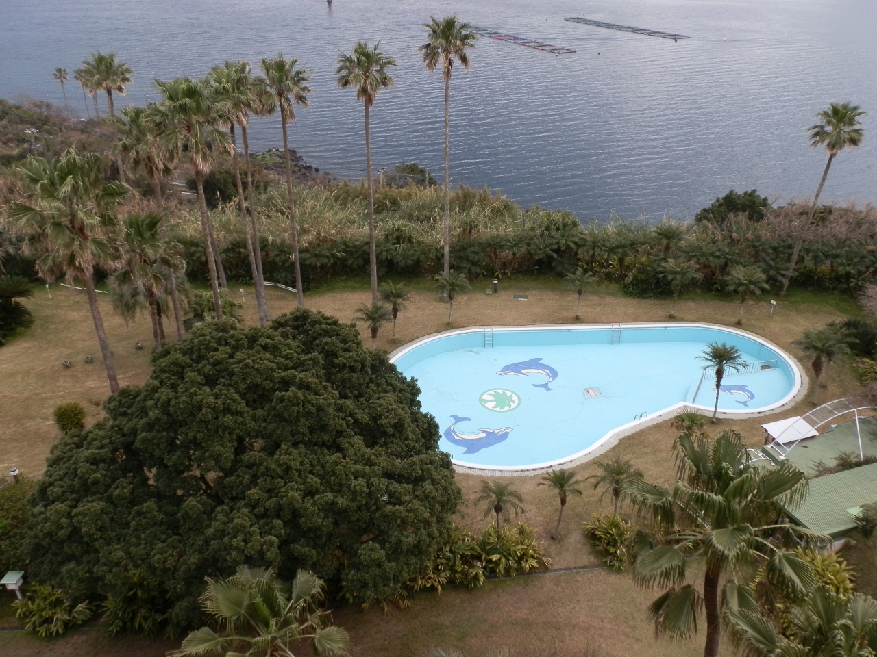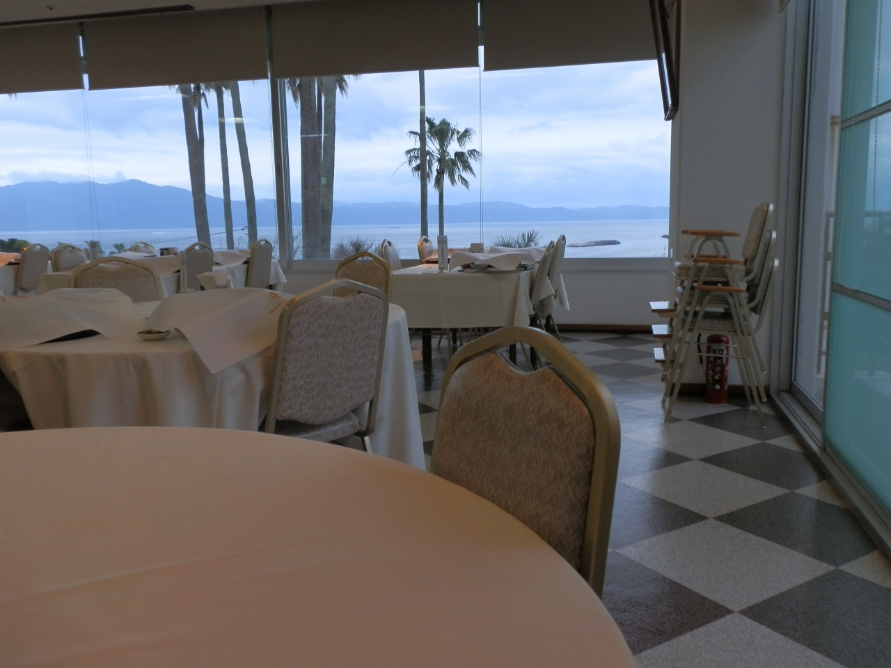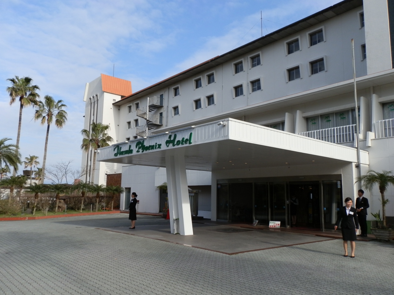 JR指宿駅前のバス停で池田湖行きのバスに乗車し、「五人番」というバス停で下車した。急坂を登ると指宿フェニックスホテルである。玄関前にベルボーイならぬ、男女の従業員が5~6名待っていた。名札を見ると研修生と書かれていた。一人が寄って来て、バックをフロントまで運んでくれた。チェックインを済ますと部屋に案内された。部屋は最上階の6階、オーシャンビューで目の前に海が開けた。ここまでの接客対応は良い。