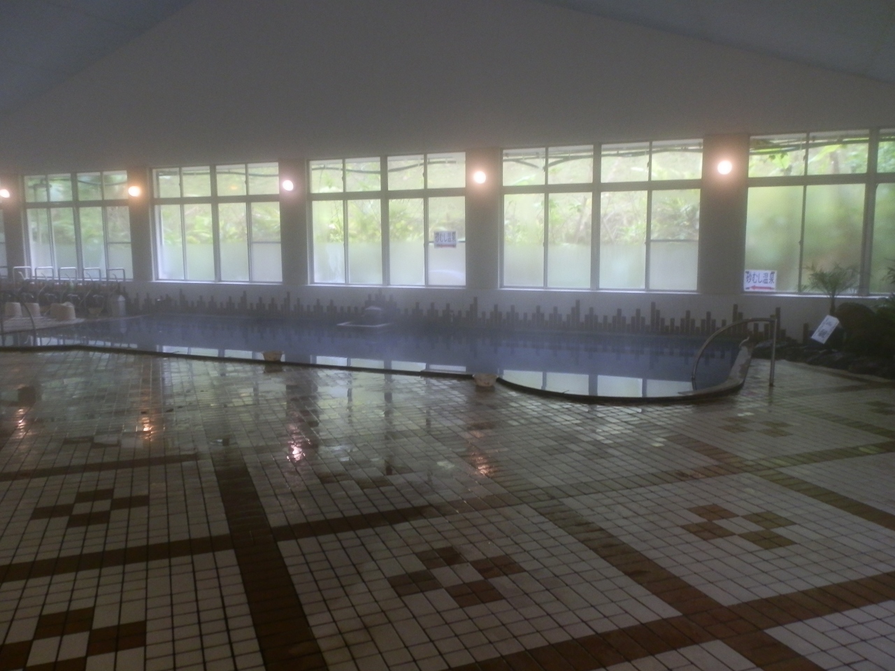 ちょっと休み、砂風呂に出掛けた。大浴場の入口で砂風呂の説明を聞き、砂風呂専用の浴衣を受取った。大浴場・露天風呂を通り過ぎると、小さな体育館みたいな建物がある。その中が砂風呂であった。砂の上に寝転ぶとスコップで砂を掛けてくれた。入浴制限時間は10分と言われ、砂から上がった。体中がぽかぽか温まっていた。