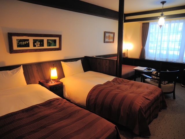 お部屋は木のぬくもりが感じられ、ゆったりとしたツインのお部屋でした。