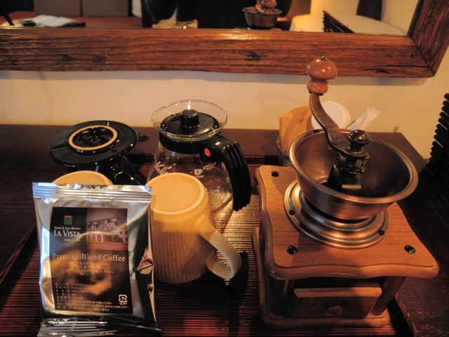 部屋にはミル挽きコーヒーがあって、部屋でくつろぎながら挽きたてのコーヒーを嗜む時間は贅沢なものです。