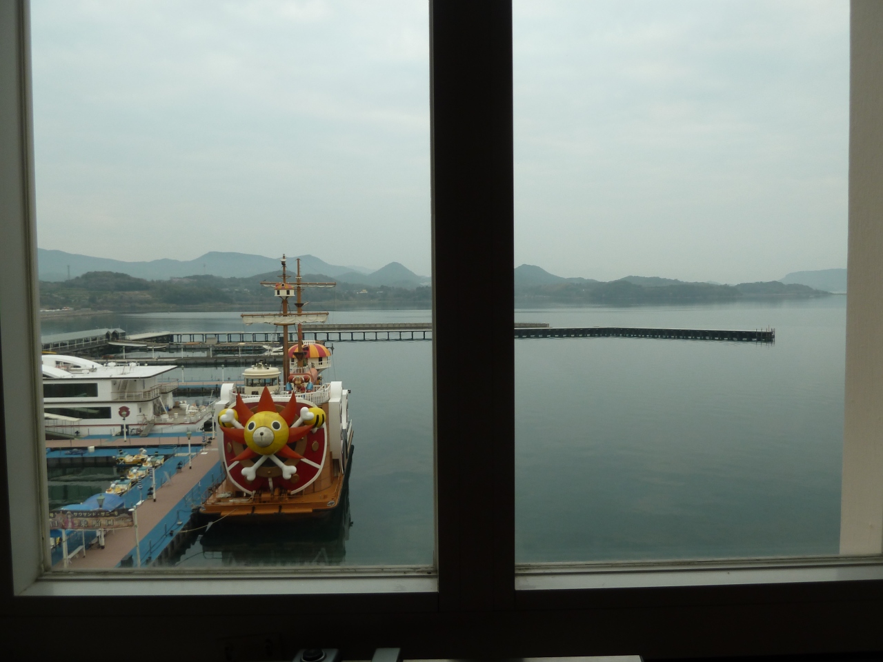 お部屋からはワンピースのサウザントサニー号も見え、ワンピース好きの子どもが