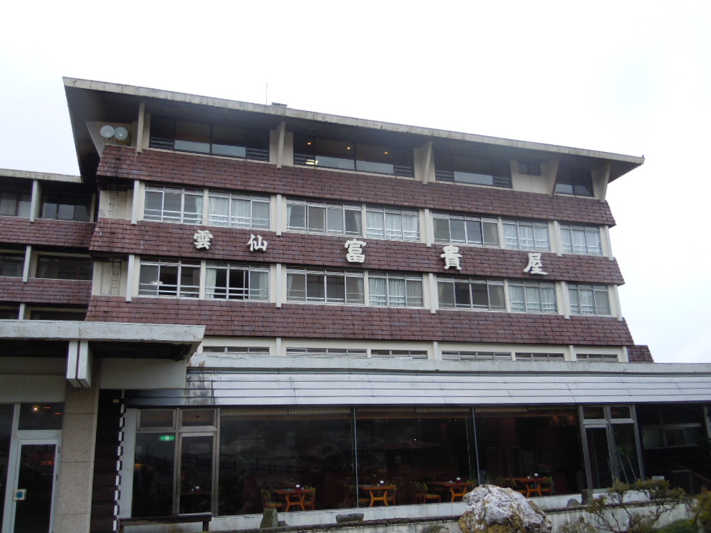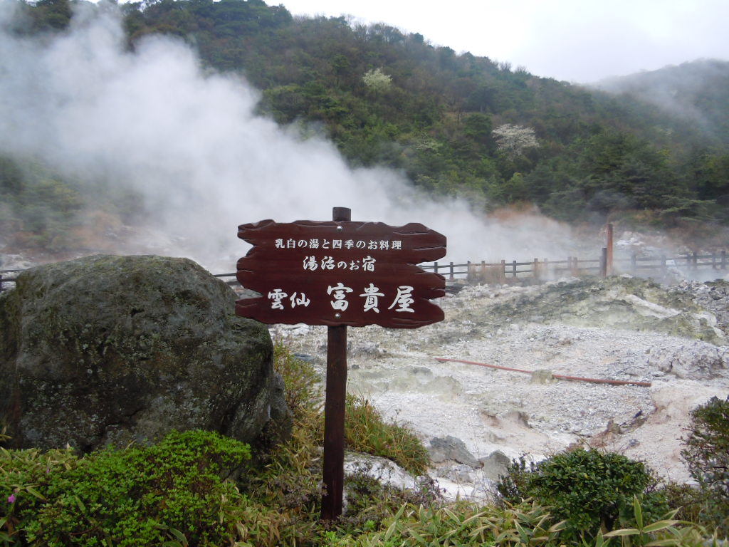 旅館出発前、フロントにいた40歳前後の男性に雲仙普賢岳が