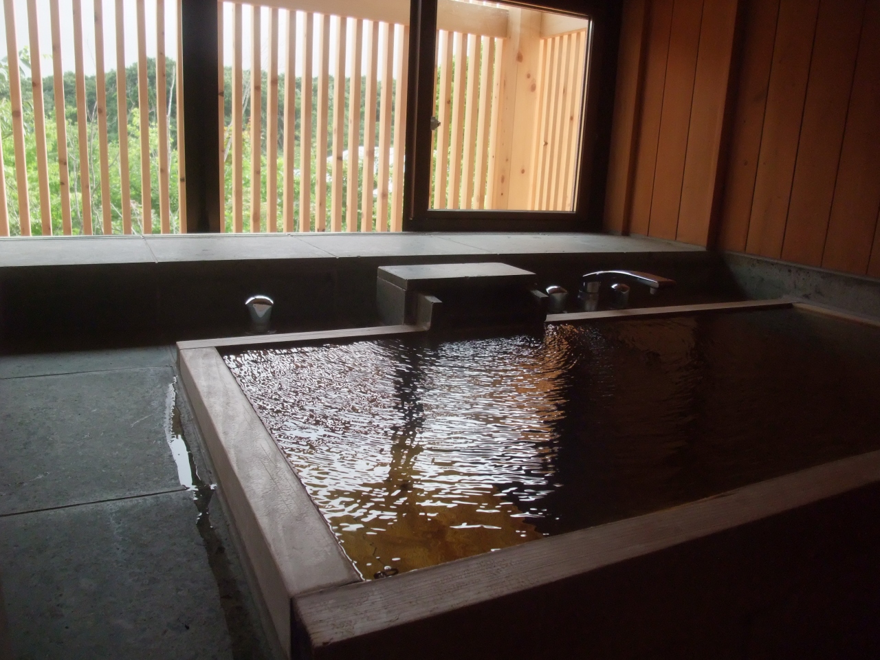 「結の米」には、源泉かけ流しの檜の内風呂が付いていました。