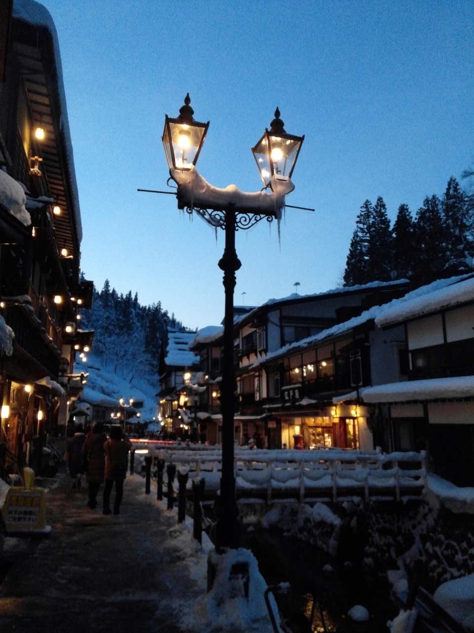 夜のガス灯の明かりは、寒さを忘れるほど温かみがあって