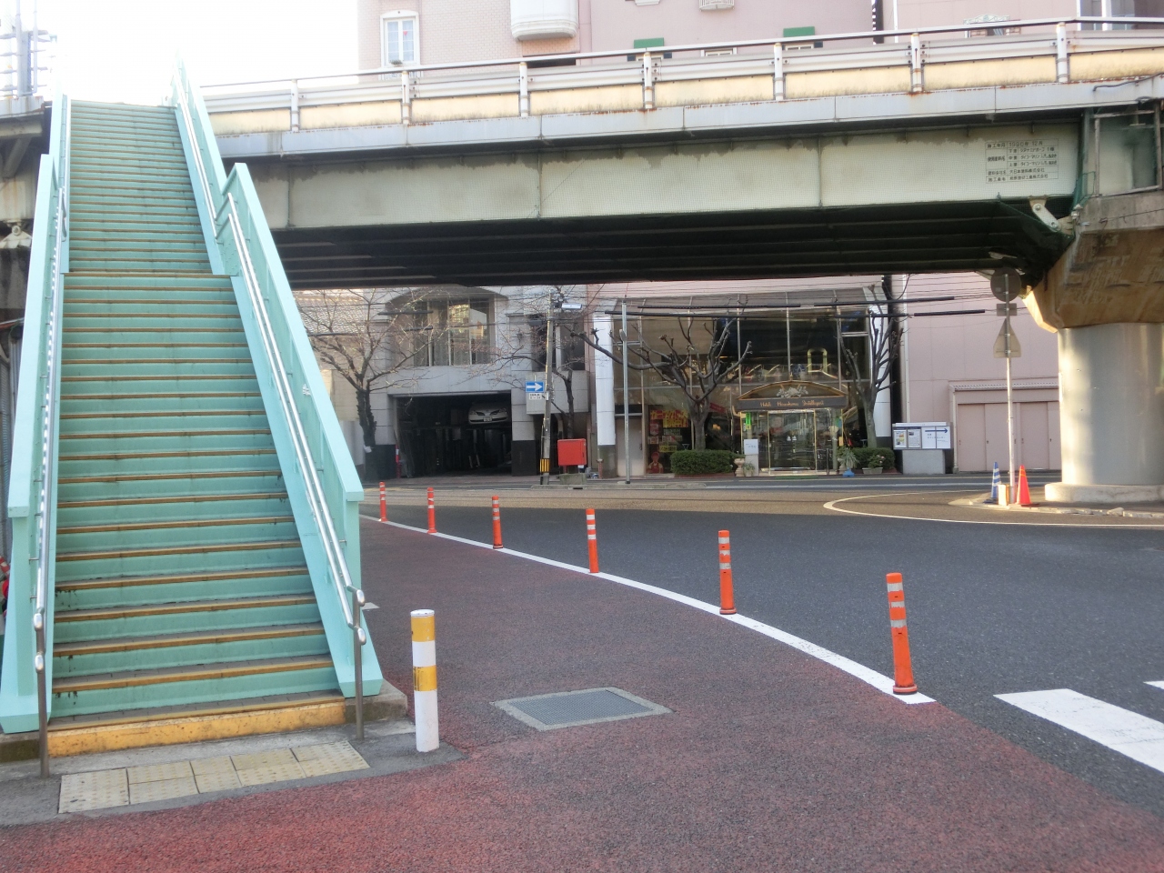 JR山陽本線の線路に沿って、東方向(岡山方向)へ進むと途中、マツダスタジアムへの案内板を左に見て、踏切を越えてさらに東方向へ。やがて線路をまたぐ歩道橋があり、これをくぐるとホテルに到着です。ホテルを過ぎてさらに2~3分、線路沿いを東方向に進むと、マツダスタジアムがあります。ホテルの売りのひとつが、マツダスタジアムに最も近いということですが、偽りはありません。ホテルのとなりには、大変珍しい、赤いローソンがあり、観光名所のひとつになっているそうです。