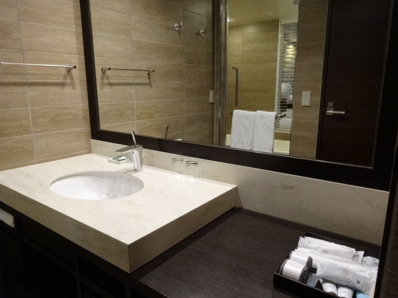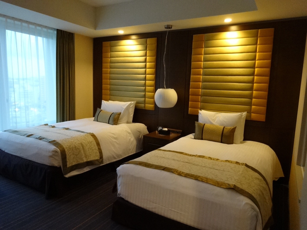 ゆいレール旭橋駅からは通路でつながっているしバスターミナルもホテルのすぐ前です。国際通りも徒歩圏内なので観光拠点に便利でした。ホテルのフロントは最上階にありウエルカムドリンクをいただきながらチェックインを済ませ部屋に案内されます。ホテル内のエレベーターはカードキーがないと動かないので安心です。朝食は最上階のレストランでバイキングですが沖縄料理もフワフワオムレツも美味しかったです。部屋の設備もスタッフのサービスもさすがリーガロイヤルと思わせるもので寛げました。