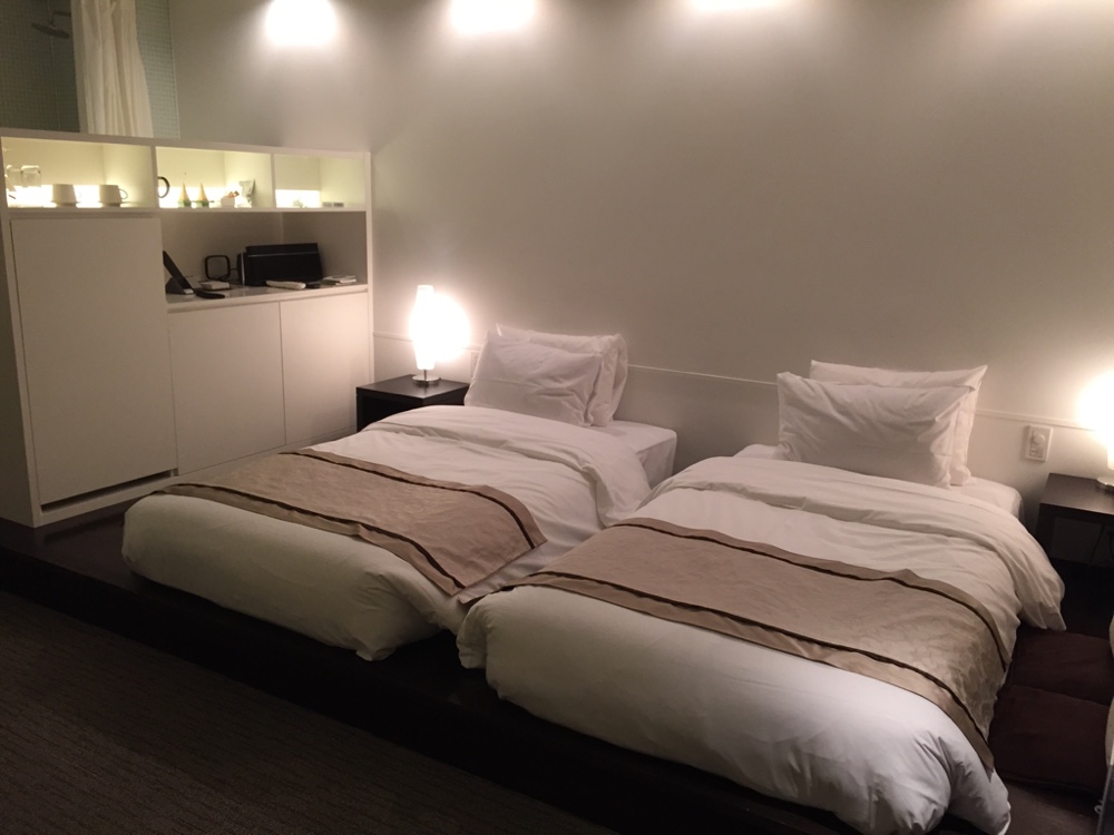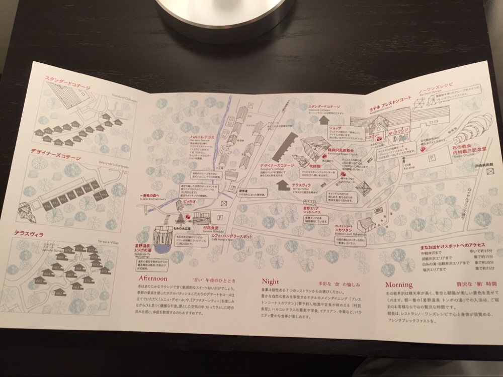 ほしのエリアにあるブレストンコートはコテージ式のホテルです。ヴィラまではフロントからキューブで送ってくれます。部屋にはテレビはなく、ラジオとCD。簡易な感じのベッド。バスルームはオープンでちょっと落ち着きません、シャワーは固定式。禁煙設定はなく消臭対応のみでした。朝食は一部ブッフェで、蕎麦粉のガレットを作ってきてくれます。おしゃれな感じではあります。