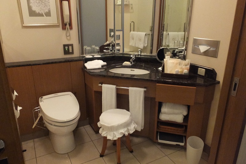 広々した部屋は過ごしやすく、お湯張りは自動、洗面所のイスにもタオルカバーがかけてあり清潔感あります。アメニティは資生堂スーパーマイルド?これはちょっと(笑)