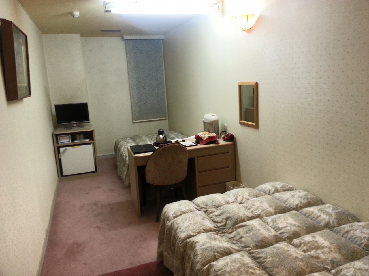 いつもは松江駅周辺のドーミーインなどを使うのですが、式年遷宮のせいか空きが少ないか、値段が高騰していました。玉造を見るとここがツインの1人使用で8000円台とドーミーインや東急インより安かったため、宿泊しました。