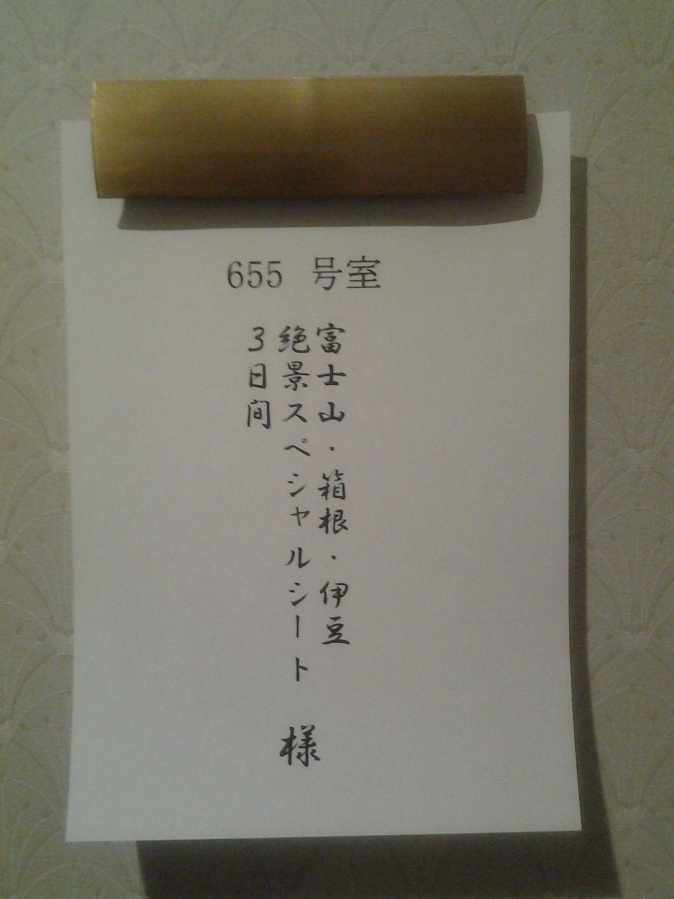 「絶景スペシャルシート」ということで泊まったこちらのホテル、せっかく絶景の景色が見えるはずだったのに、めったにない濃霧で、富士山を見ることができなかったのが、とても心残りでした。