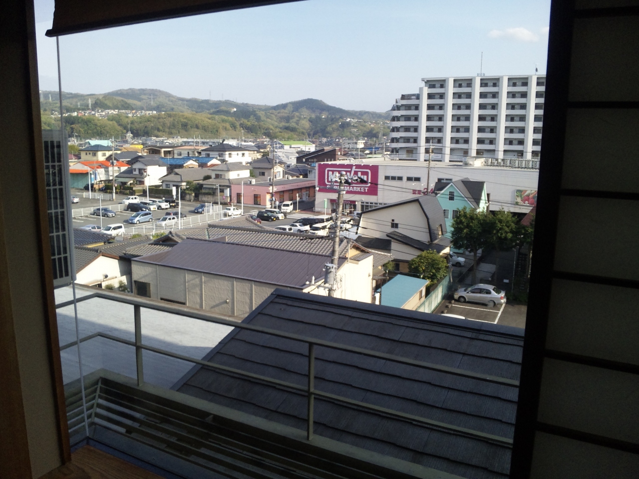 客室からの眺望。狩野川と反対の街側で、マックスバリュー近し。