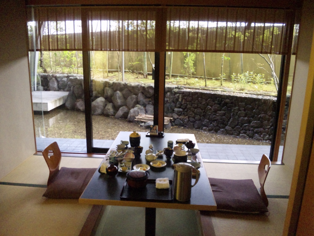- 二間和室で広いですが、狩野川側ではなく街側で、しかも貸切露天風呂の真上の位置で、窓の3/4がマスクされていたので、眺望が残念でした。