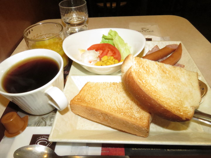 朝食は1FのCAFE de CRIE のモーニングセットをいただきます。私には十分です。差額でボリュームアップをすることもできます。外からの利用もあるので時間によっては席が少ないこともあります。