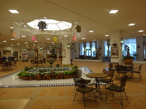 こちらのホテルのひまわりの湯、おすすめです。露天風呂から景色を見るのが好きです。今回はあいにくの雨でしたが、ホテルの中庭も素敵です。また、ホテル内のショップでのお買い物も楽しいです。スペインの雑貨や調理関係のもの、衣類なども売っています。