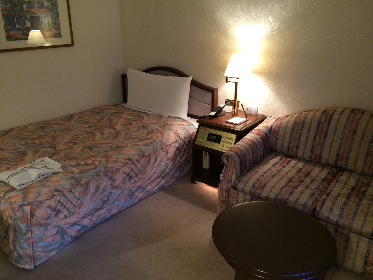 セミダブルでしたが、ソファとテーブルがあり、広めな部屋でした。枕もフロント前で数種類貸し出ししており、高い枕に慣れているので、お借りして寝ることができました。