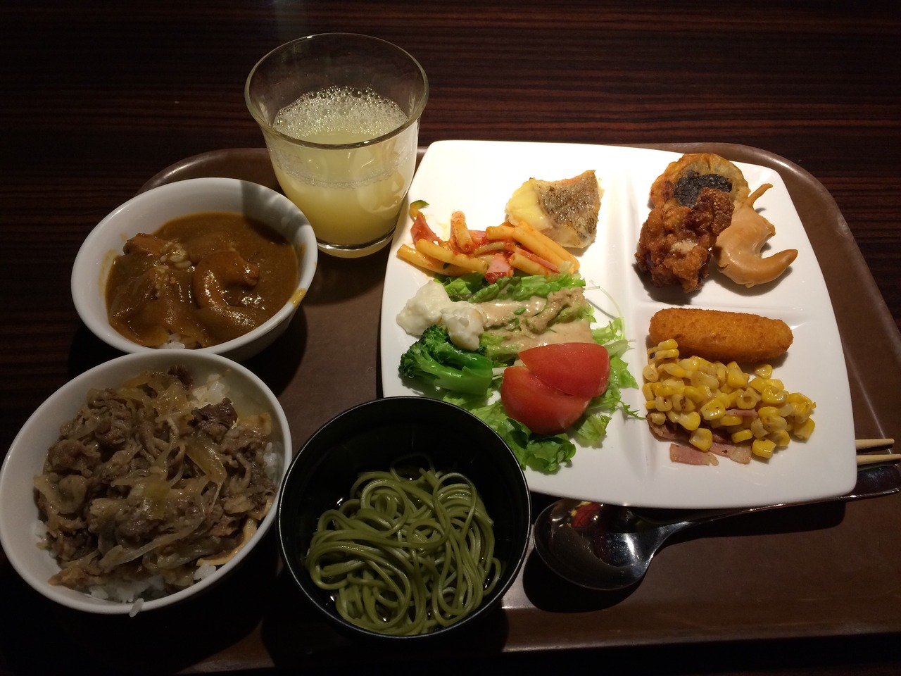 朝食は地下一階のカフェでとりますが、ほとんどの席がソファになっていて、ゆったりと食事をとることができました。牛丼、ほたて子っこのカレー、道産トマトのつくねスープなど北海道らしいものもありました。