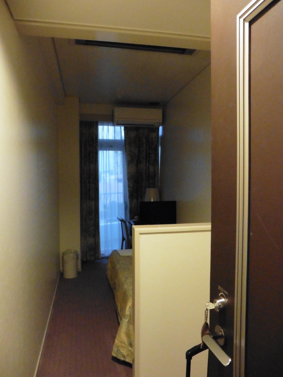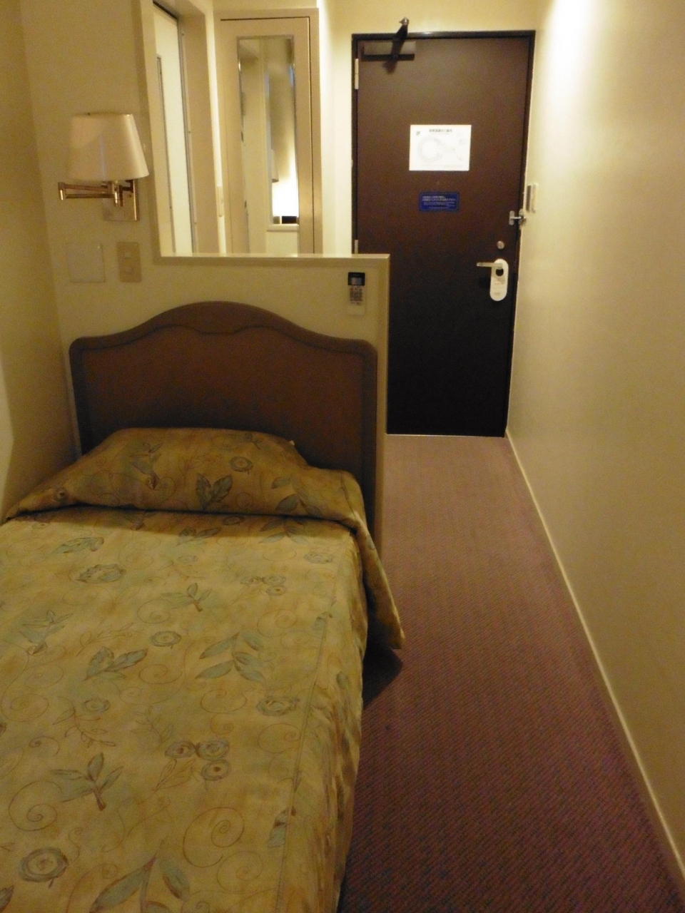 8平米という表記でしたが、ベッドとデスクがあるだけといった狭さで、この部屋に入った第一印象は「ツアーの添乗員さん向けの部屋」かと思ったほどです。