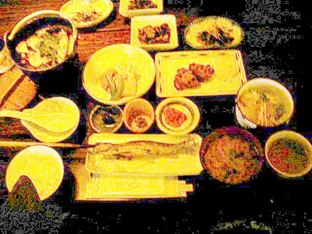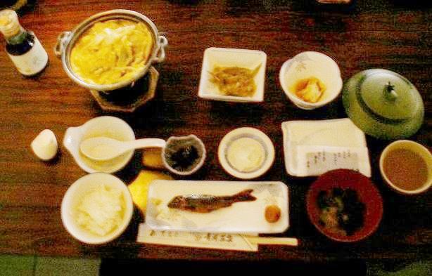 料理:「ランプの宿」夕飯は岩魚の塩焼きなど飾らない田舎料理です。昔ながらの鄙びた宿の素朴で心のこもった味わいです。朝食では自分で卵とじを作って食べるのですがこれもちょっと楽しめます。