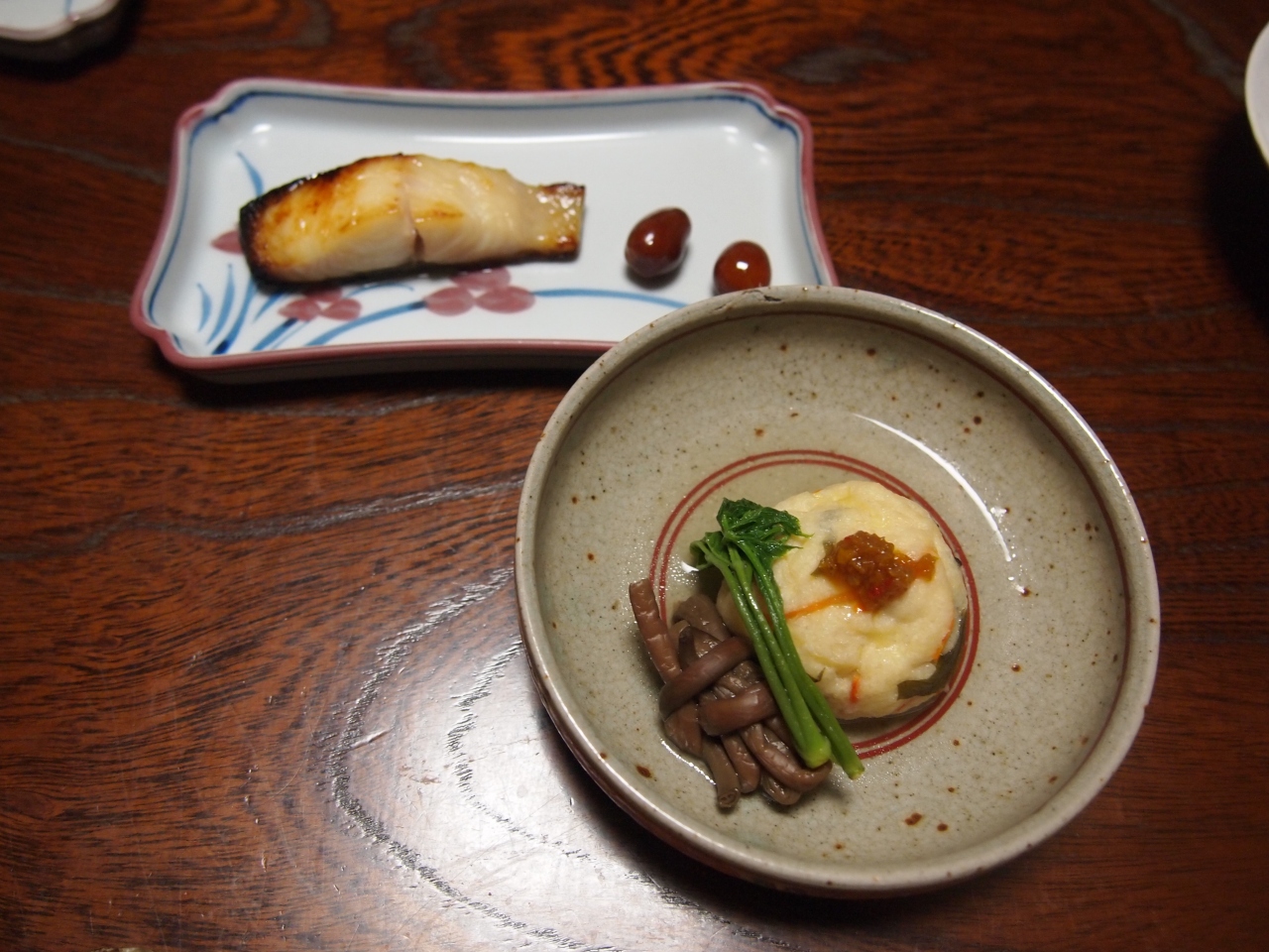 宿の売りである食事ですが,まず説明が少ない。自家製のものだけは説明されていましたが,それ以外は聞かないと教えてくれないですし,おかみさんが忙しそうなので,聞くのも憚られます。夕食のメインがなかったですが,もしかして小ぶりのメダイの味噌焼きがメインだったのか? かやくご飯はもう少ししっとりしていてほしい。一人2万も出して,夕食のデザートがヨーグルトというのは本当がっかり。この程度の食事で一人1.5万円ぐらい取る和食屋さんも銀座の端っこにはあるので,それと比べるとCPは悪くないといえなくもない?