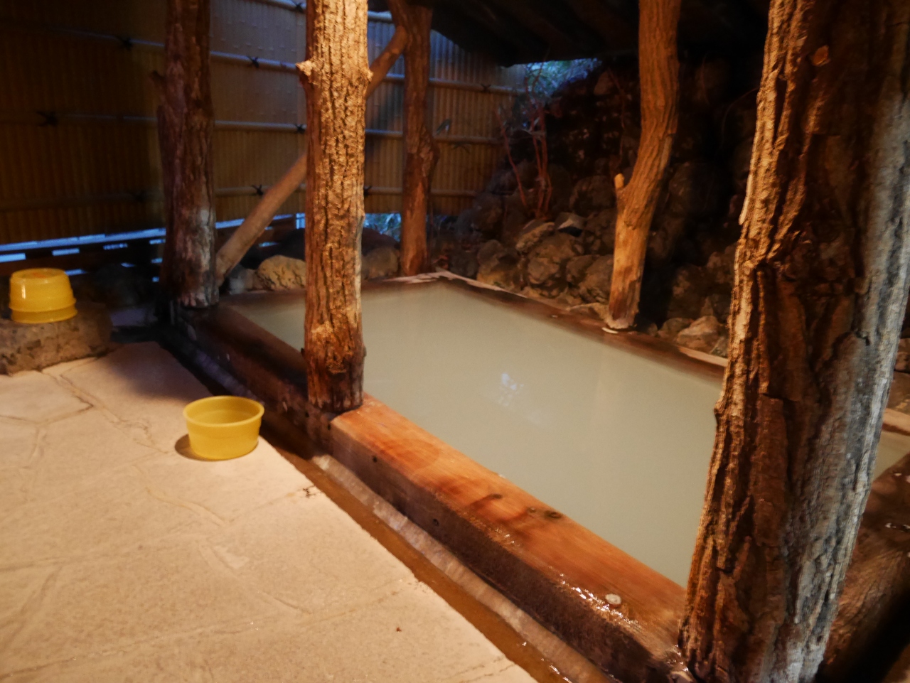 地下の貸切露天風呂は、眺望とか庭とかはなにもないのですが、逆に湯治小屋っぽい雰囲気があり、新地蔵の湯の乳白色の湯はとてもよかったです。