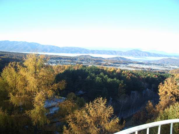 二日目の朝も良く晴れていますが茅野方面の低い方面は川霧のような霧に包まれています。