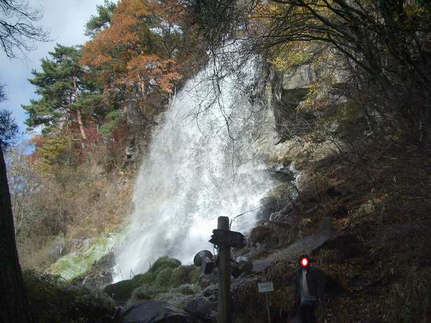 気温が低いので滝の飛沫で滝の周りは氷になっています。