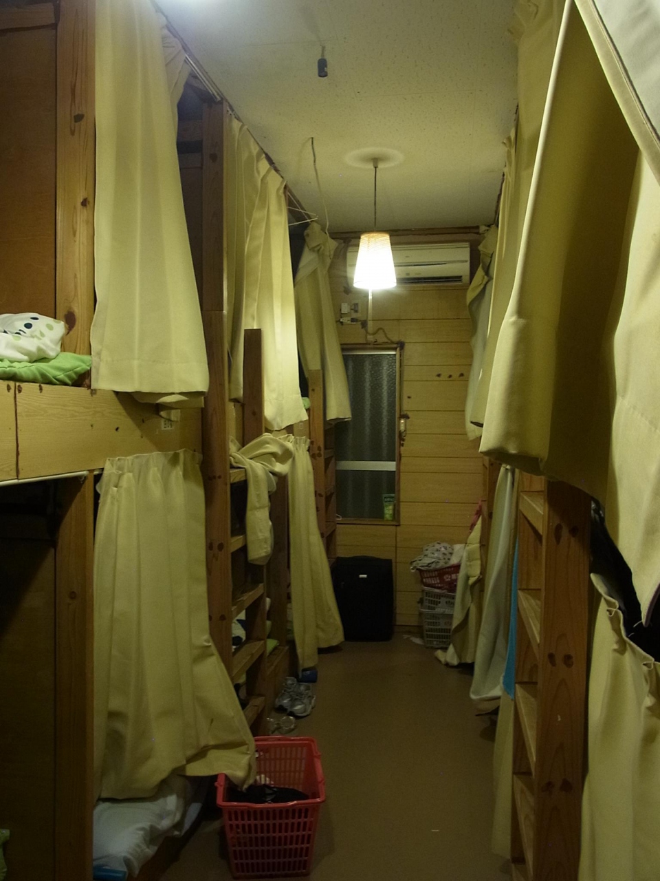 美栄橋駅より徒歩5分強で着きます。泊まったのはドミトリー部屋で二段ベッドが所狭しと設置されています。各ベッドには簡易ランプと電源コンセントがあり便利です。エアコンも設置されいます。他に、共同のキッチンとシャワー、荷物置き場、インターネット環境もあり必要なものは揃っています。ちょっと泊まる人数も多かったので、各旅行者の私物や、忘れ物が散乱しています。キッチンの冷蔵庫もパンパンに詰まっててスペースはありませんでした。