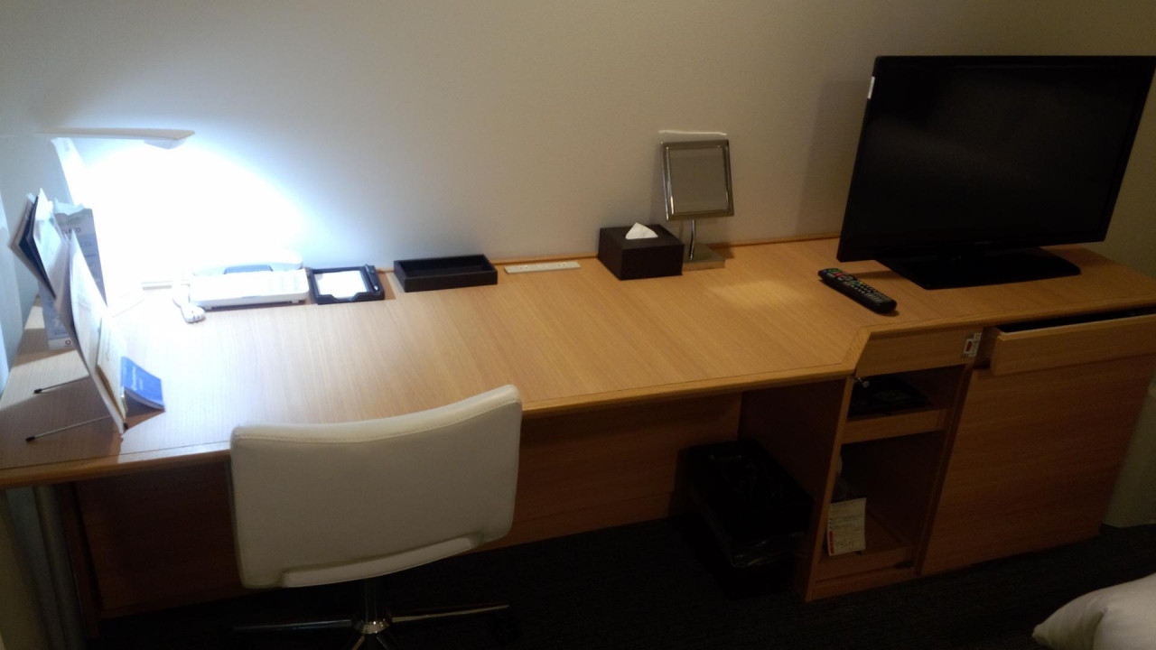 完成して1年程度の新しいホテルなので、非常に綺麗です。ロビーは白と黄緑色のテイストで、他のダイワロイネットホテルとは少し違った印象です。