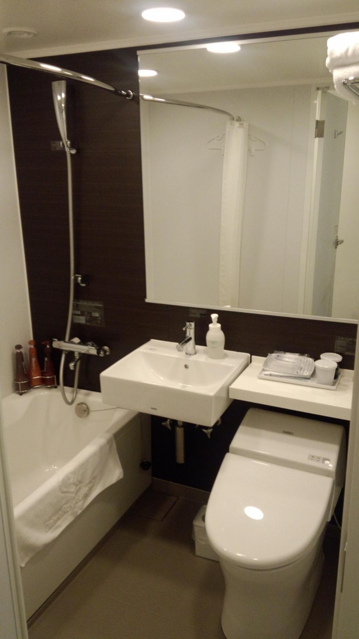 ユニットバスも広めになっていて、カーテンを閉めても体洗うのに苦労しません。サーモスタット付きのシャワーなので温調も楽です。