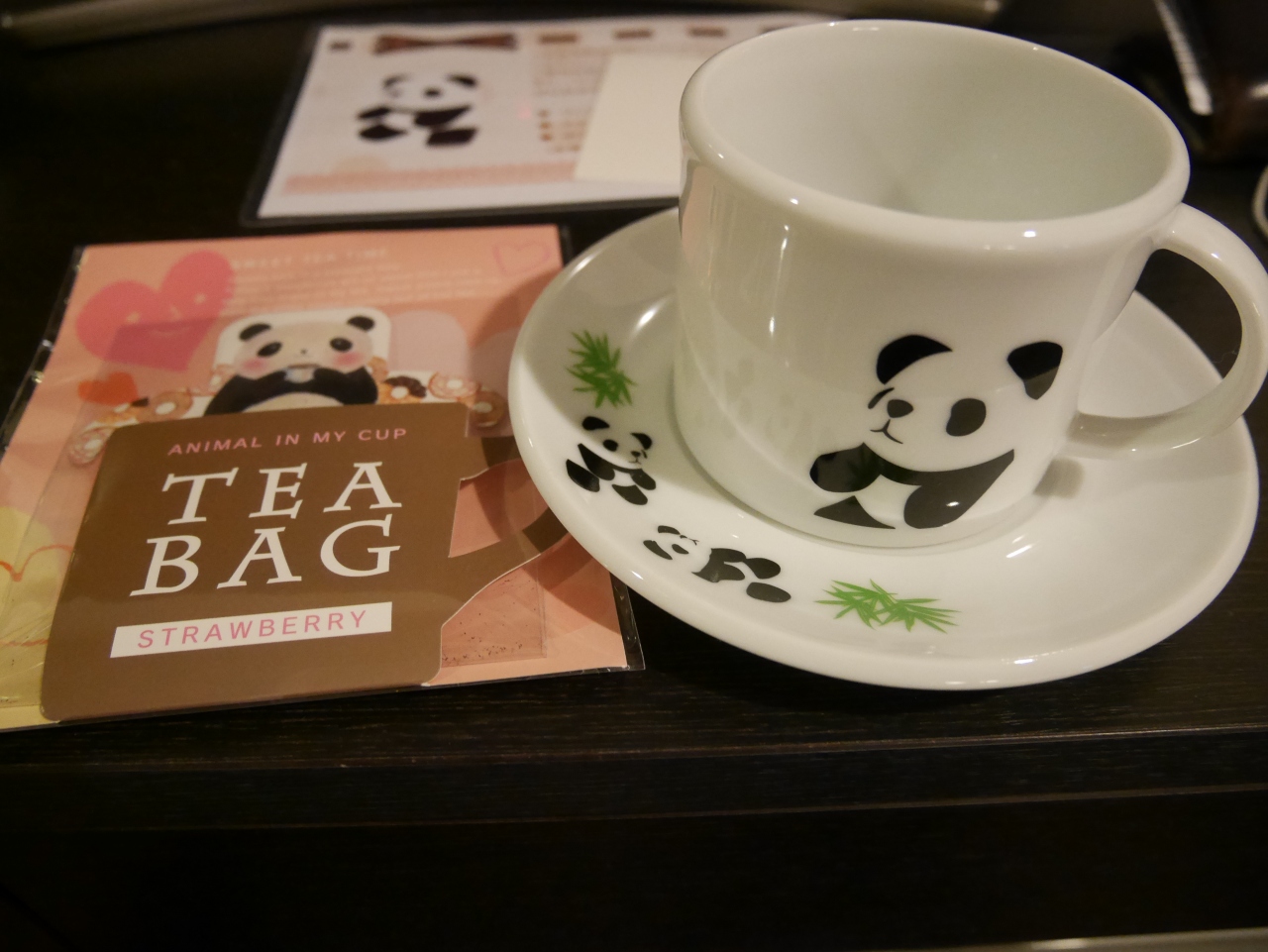 コーヒーカップ等の小物やアメニティにもいろいろパンダが使われていました。