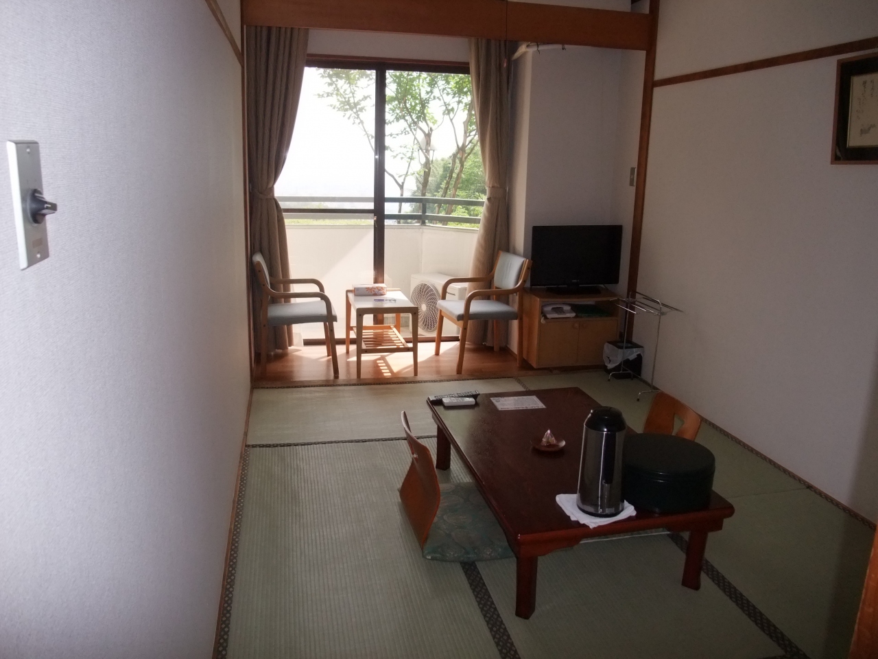 部屋は、和室6畳とテーブルと椅子の縁側で、かなりせまいです。
