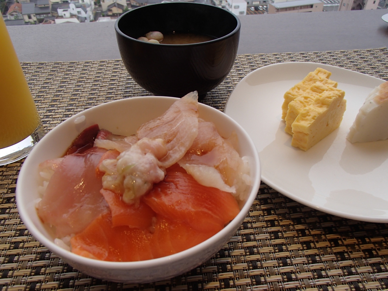 朝食はフロント階のレストランでビュッフェでいただきました。このホテルの一押しは朝食に勝手丼があることのようです。ただ勝手丼以外のビュッフェメニューはまずまずだったと思います。また団体ツアーでよく利用されるようで朝8時前に行くと混み合っていたので、団体が入っている時は少し時間をずらして朝食会場に行くのがよさそうです。