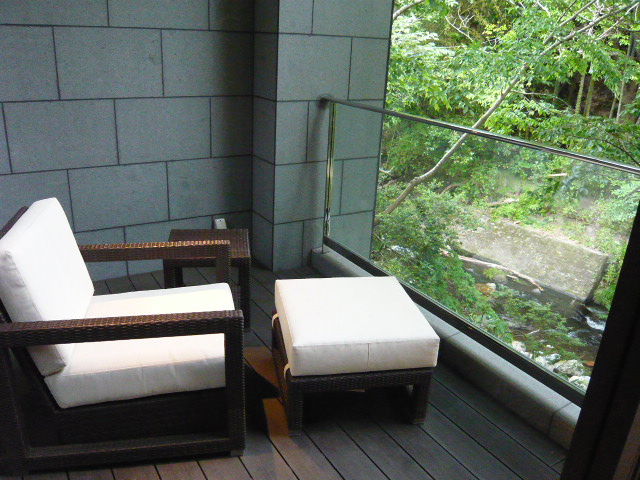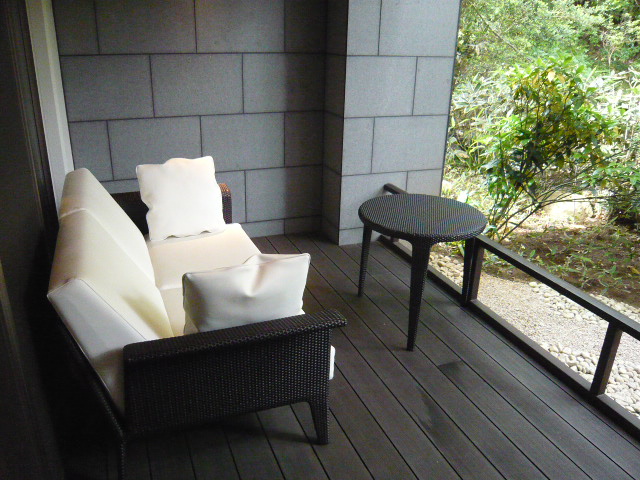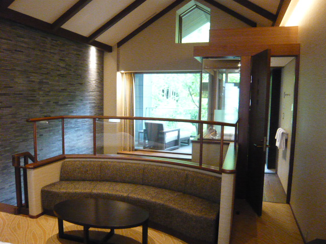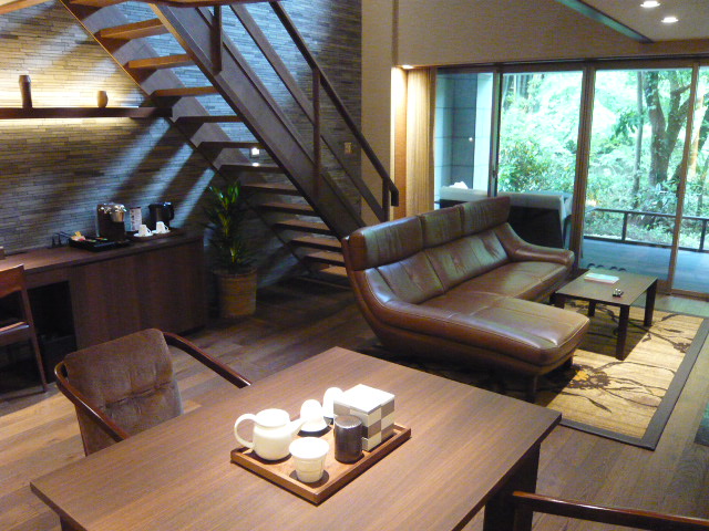ヴィラスイート蔵に宿泊。早めの午後2時頃に到着しましたが玄関で待っていたスタッフに案内されチェックイン。食事の時間、無料貸切露天風呂の予約をして客室へ。アプローチに関心しながら3,4分。露天風呂付メゾネットはスタイリッシュな作りで1階にリビングダイニング、2階にベッドルーム、シャワールーム、露天風呂、1,2階にトイレ、パウダールーム、吉奈川を眺められるテラスがあります。ミネラルウォーター、コーヒー等、クッキー等あり。フリードリンクは大正館芳泉でPM5時まで生ビール、梅ジュース、オレンジジュースほか。食事はレストランで夕食10品ほど、朝食は和食のみ、おいしい日本料理ですが料金に見合わず。敷地内には足湯テラスのベーカリーカフェや散策エリアあり。