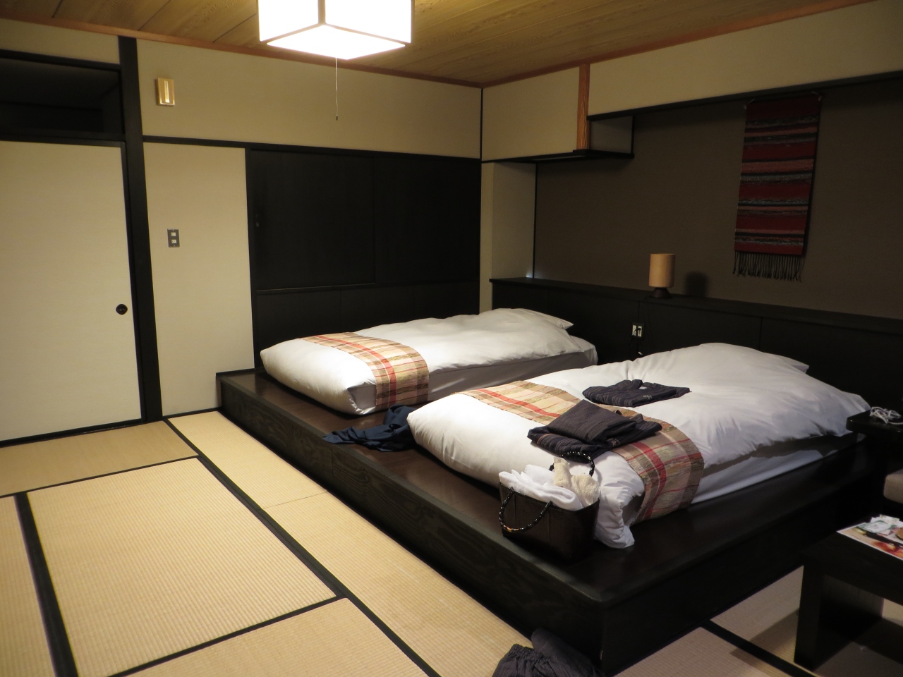 ・部屋は和室ですが、一段上にベッドタイプの布団を設置してあり段差があるので