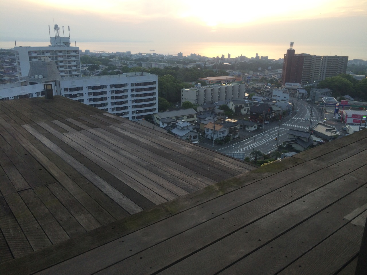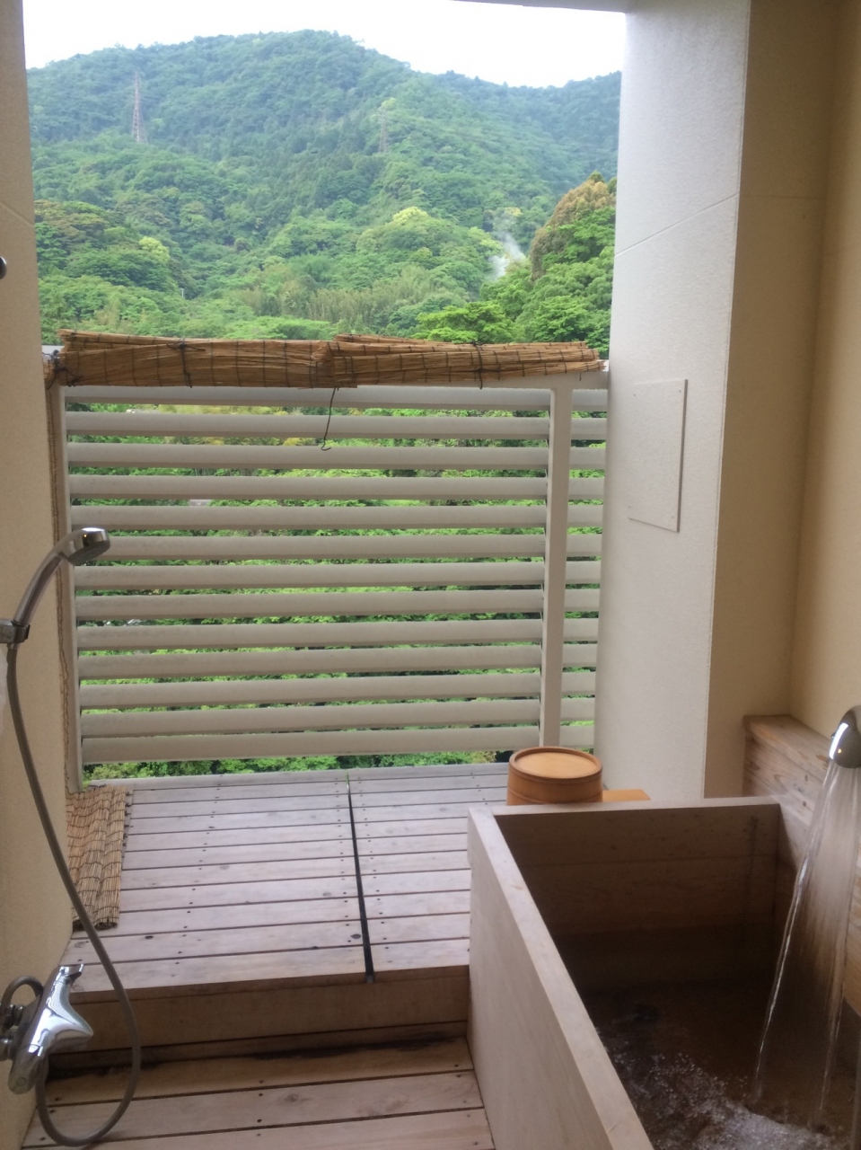 シーダーフロアは海側の部屋が空いていて、お部屋の露天風呂は海と山を見渡せ絶景でした。