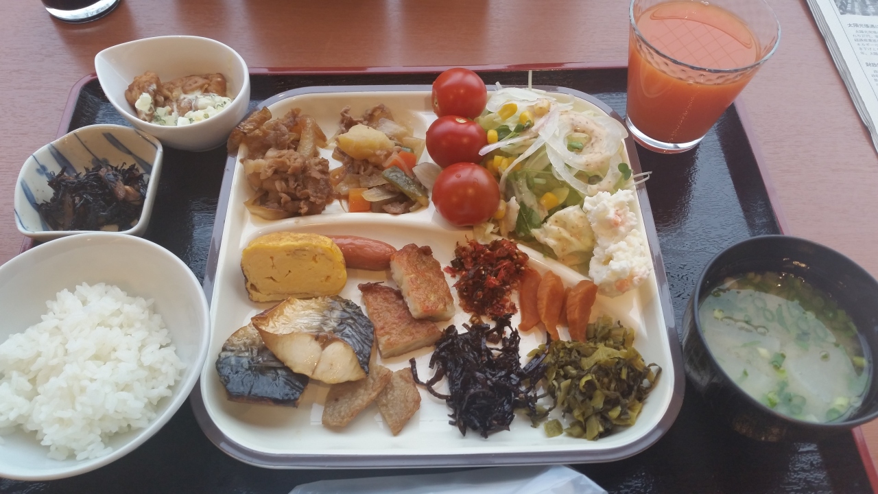 朝食はこんな感じです。お腹いっぱい食べました。