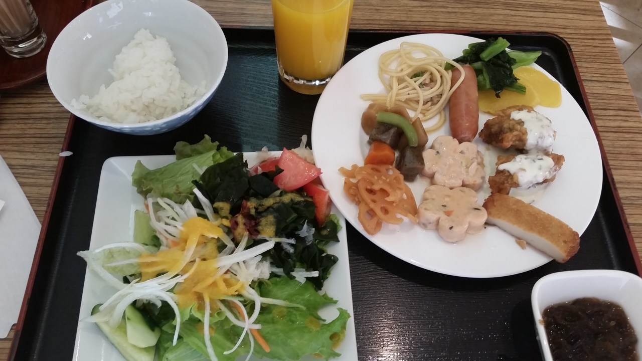 朝食は普通でした。おかずの種類は多いので、いろいろ選びたい方にはいいかもです。もう少し、本気のチキン南蛮が食べたかったです。