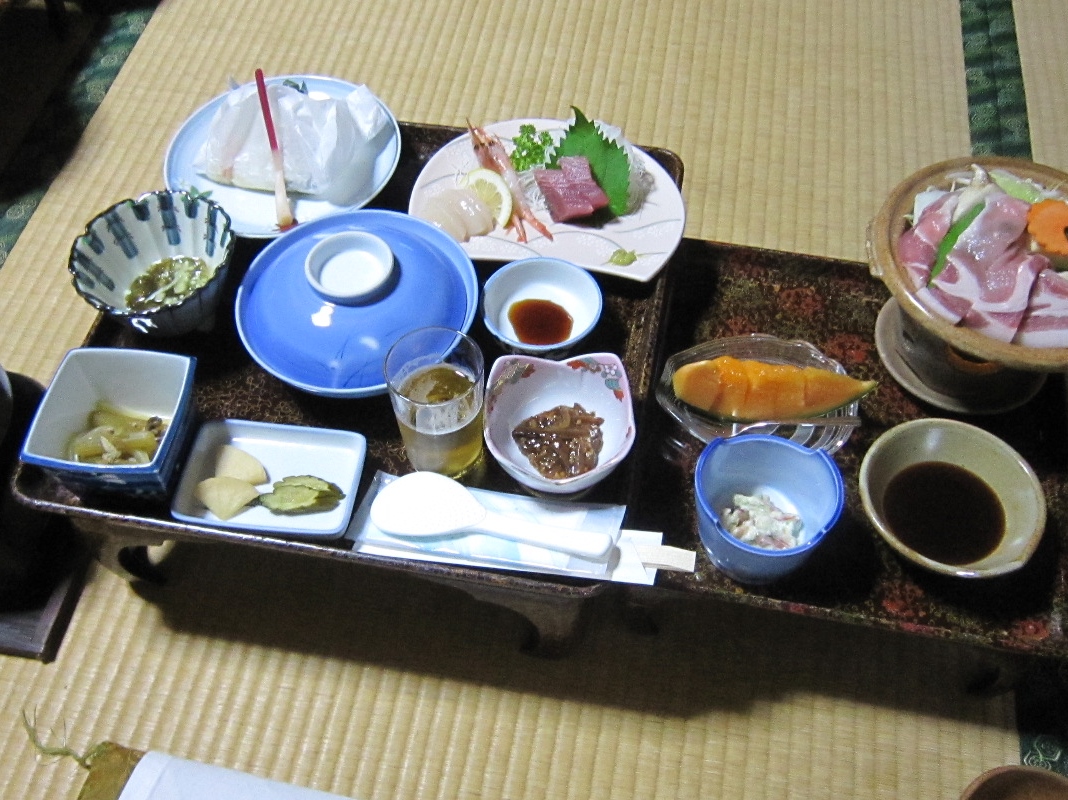 たぶんとても泉質のいい温泉なのだと思いますが、何せ古いのでちょっとびっくりしてしまいました。たぶん、こういうひなびた感じの旅館が好きな方にはとてもいいと思います。食事も特においしい!というわけではありませんが、いかにも温泉旅館で出される食事という感じです。