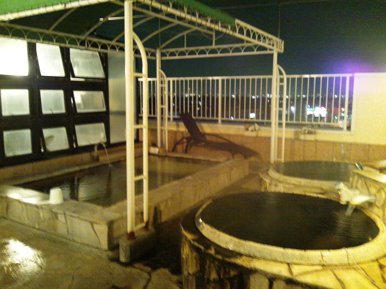 お風呂は、5階にサウナが2つ、古代檜風呂、上がり湯、ジェット、ジャグジーがあって、階段で6階に上がると、薬湯、露天風呂、樽風呂があります。内湯はスモークガラスで、景色は良く見えませんでしたが、露天風呂からは雲の間に富士山、夜景が見えました。お風呂の受付で部屋のキーと交換で、タオルとロッカーキーを貰います。その度に新しいタオルを使うのが、勿体ないくらいでした。朝は9時からしかお風呂に入れないのが残念です。