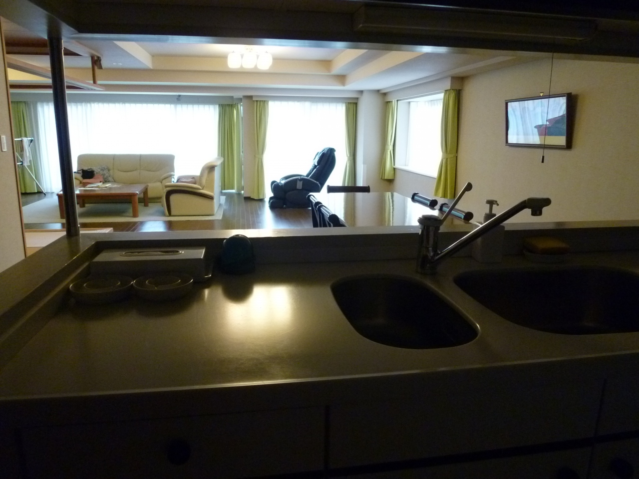 マンション2LDKを客室としているのでホテルというよりリゾートマンションに来ているという感じです。リビングのマッサージチェアーがお気に入りで大型テレビを見ながらずっとマッサージしていました。