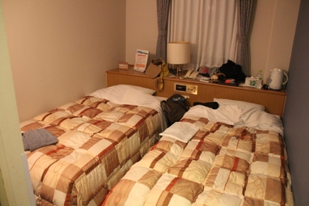 お部屋はツインで、ベッドとベッドの間隔はほぼなかく、とても狭い印象でしたが、寝るだけだったので、私は問題なかったです。床がスーツケース1つ分しか開けられるスペースないので、スーツケースの方はちょっと大変かもしれません。