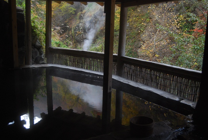 部屋からは渓谷の間欠泉を居ながらにして見る事のできる国内でも珍しい温泉宿だ。