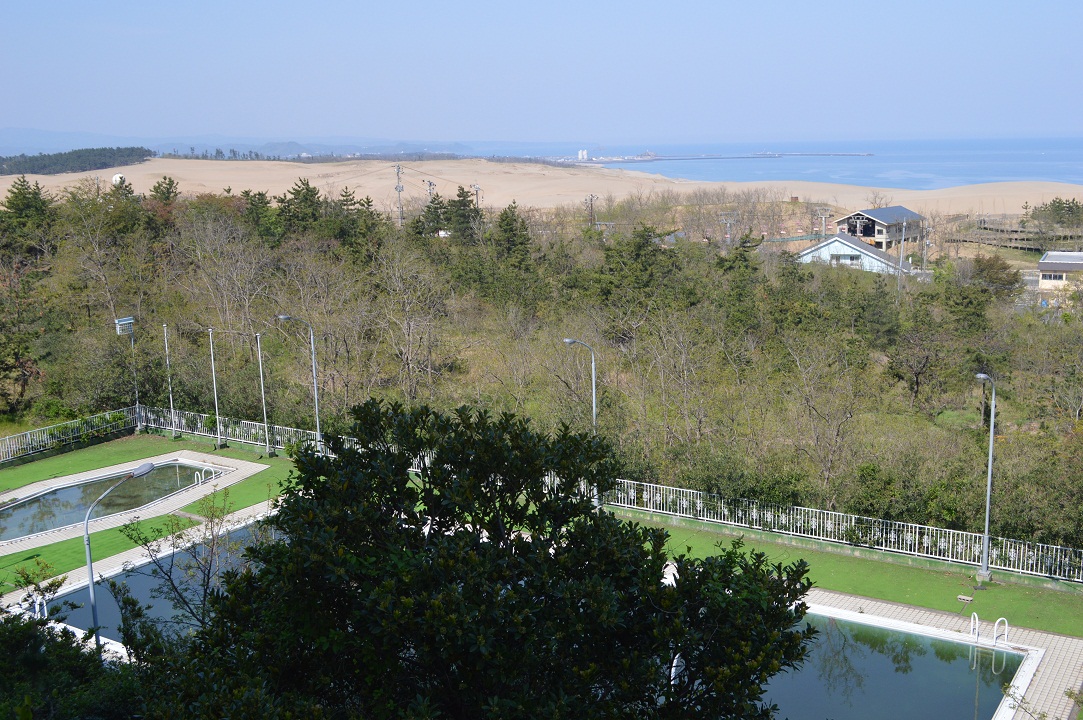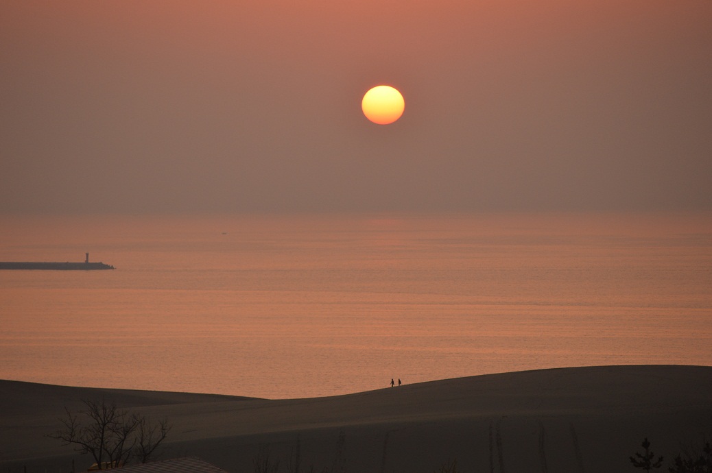 部屋から砂丘の眺望は抜群で日本海に夕日の沈む光景も手に取るように見える。