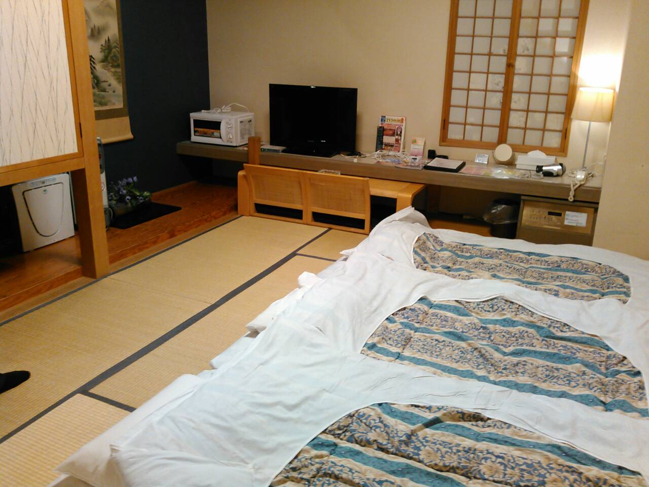 バニラ航空の超爆安ツアーのホテルです。多分、高齢の両親と一緒なので気を利かせて和室をアサインしてくれたと思いますが、実は高齢者は立ち座りが大変だったりしますので、狭くても洋室のトリプルが快適だったりします。トイレと風呂が別れていますので便利です。電子レンジが備え付けられていますので簡単な調理(?)が可能です。中島公園駅から徒歩2分。フリーwifiがサクサクはいります。