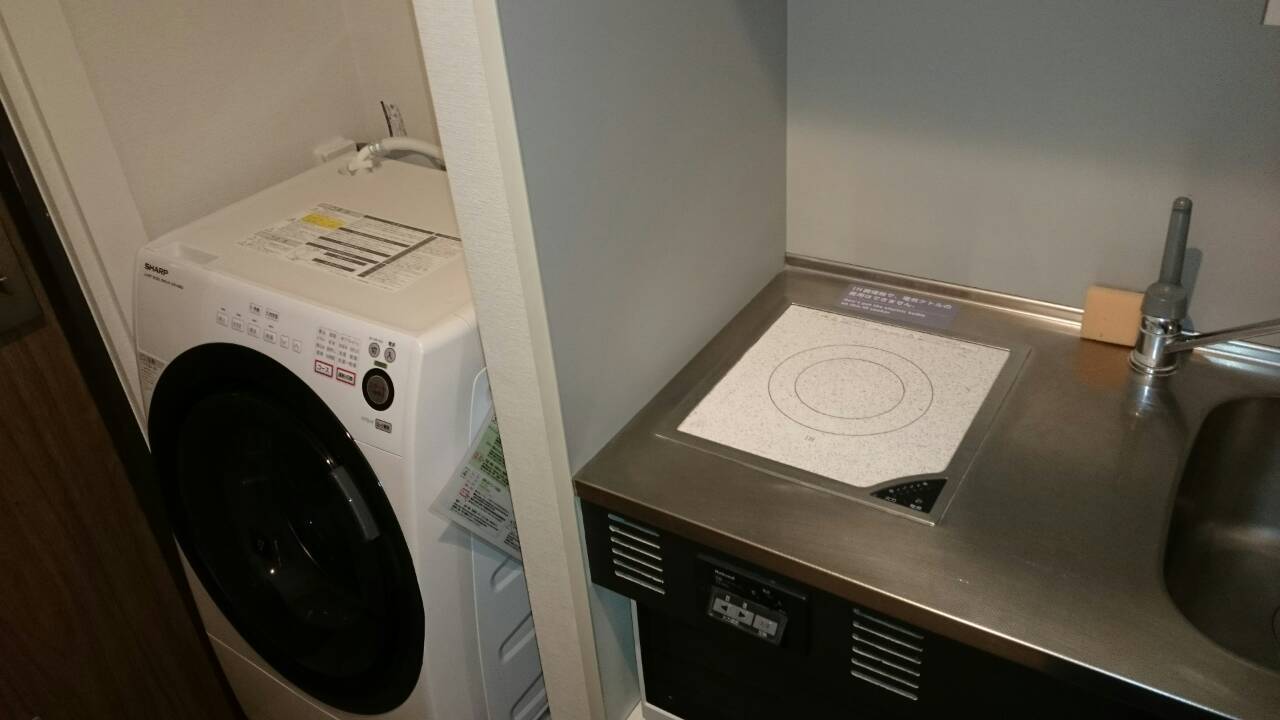ビジネスホテルと書かれていますが、部屋に洗濯機、IHコンロ、ベランダまであってまるでワンルームマンション!