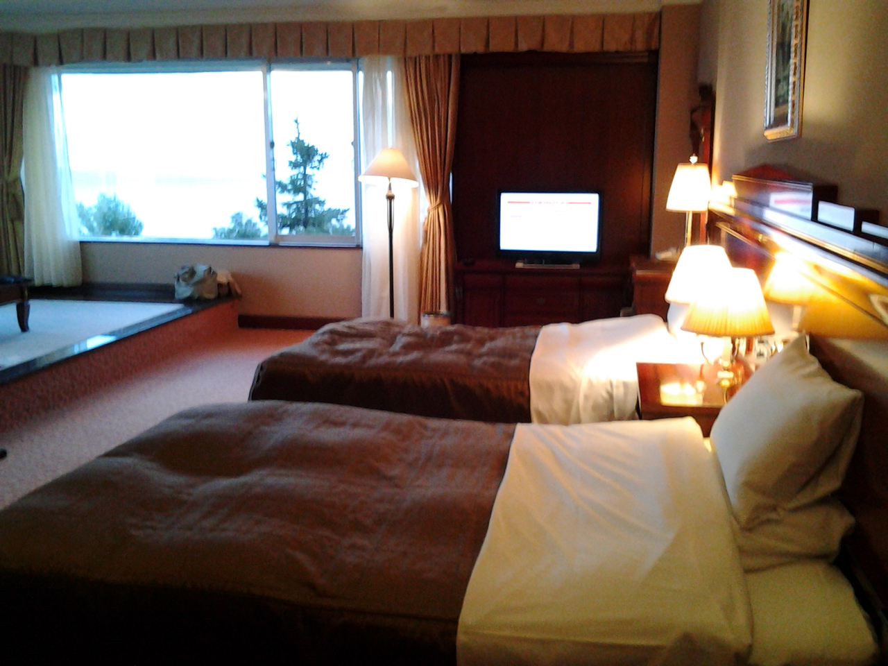 今回の部屋は和洋室になっており、角部屋だったため窓も大きくて昼間はよかったのですが、タッセルがあまりにもほどけず、カーテンを閉めずに就寝したところ、朝日直撃でとんでもなく早く目が覚めてしまいました。